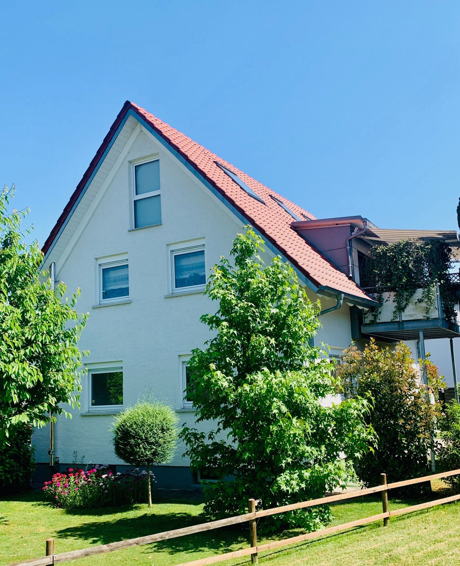 Unsere 3 Zi. Ferienwohnung SEEZEIT nahe Friedrichshafen mit Balkon und Parkplatz, bietet den perfekten Standort für Ausflüge am Bodensee, Allgäu und Oberschwaben.